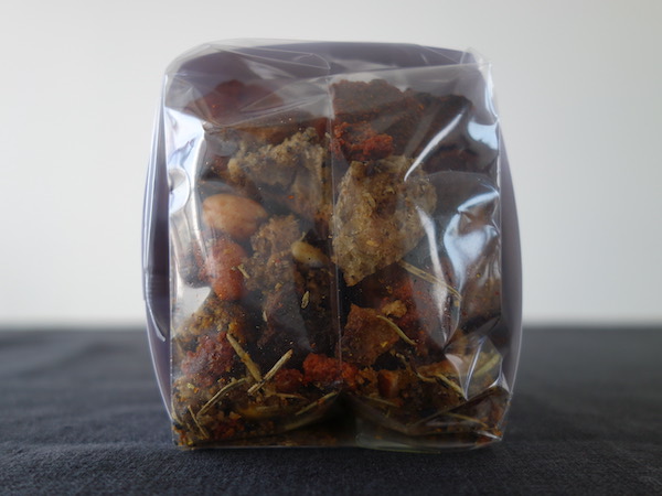 原材料:オリーブオイル・オリーブ・ケイパー・カカオニブ・カランツ・キャラウェイシード・パインナッツ・ブラックペッパー・レモン・チリ