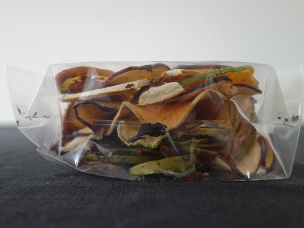 そのまま食べる、お湯を注いで5分、水出しで1晩。残ったワインに入れても。