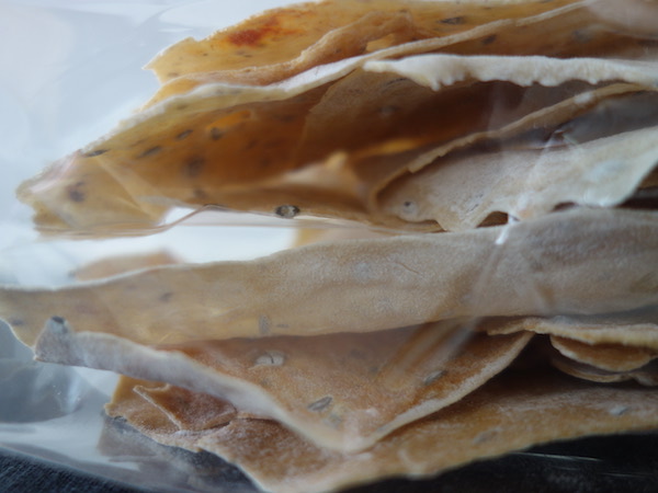 原材料:小麦粉・酵母・オリーブオイル・塩・米粉・キャラウェイ・コリアンダー・イエローマスタード・フェンネル・アジョワン・クミン・カルダモン・ブラウンマスタード・ペパーミント・チリ・ブラックペッパー・ニジェッラ・セサミ・ポピーシード